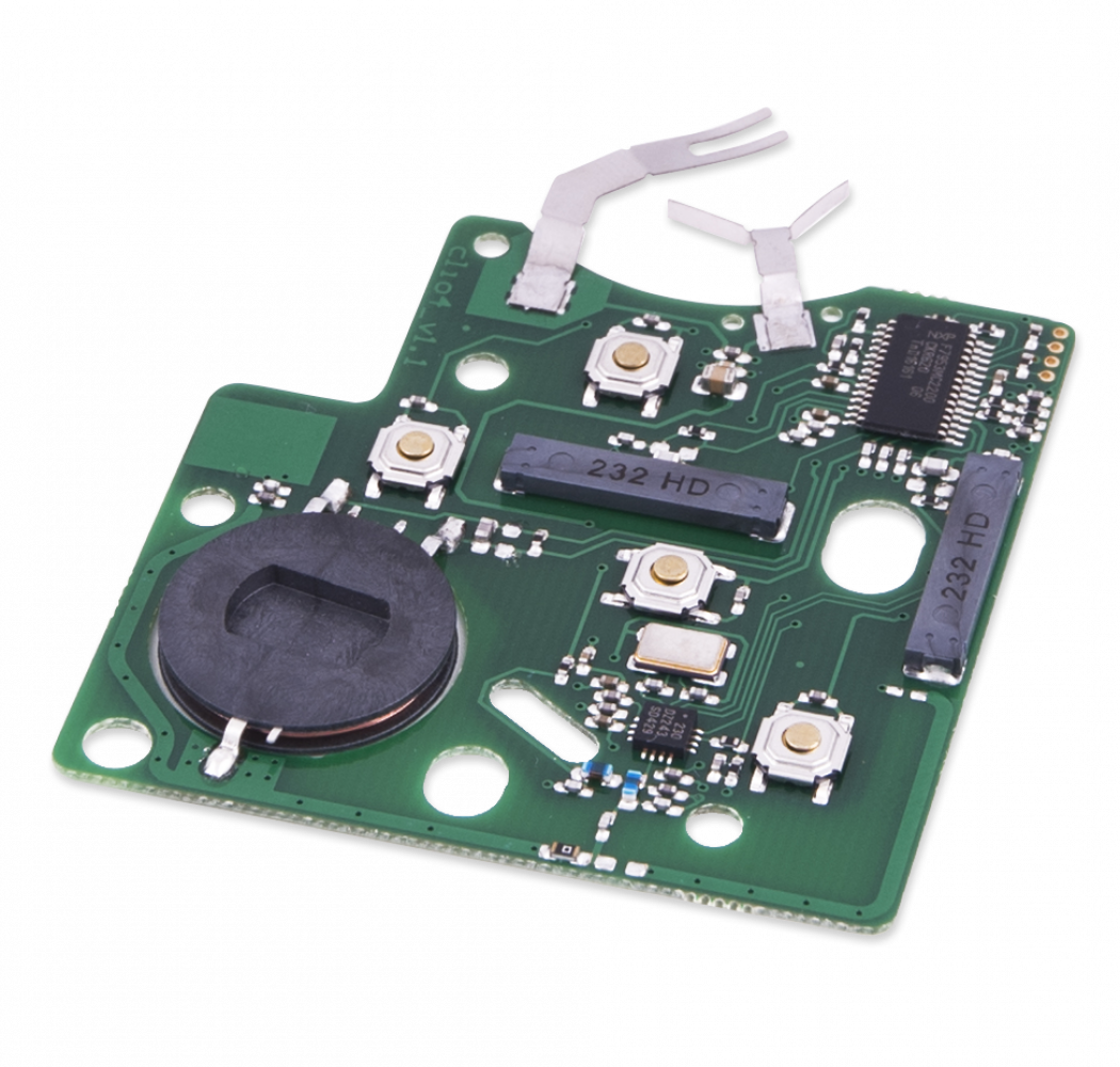 The TA28 is a keyless key PCB for programming to Renault vehicles, produced in-house by Abrites, sized perfectly to be put in an original Renault card shell.